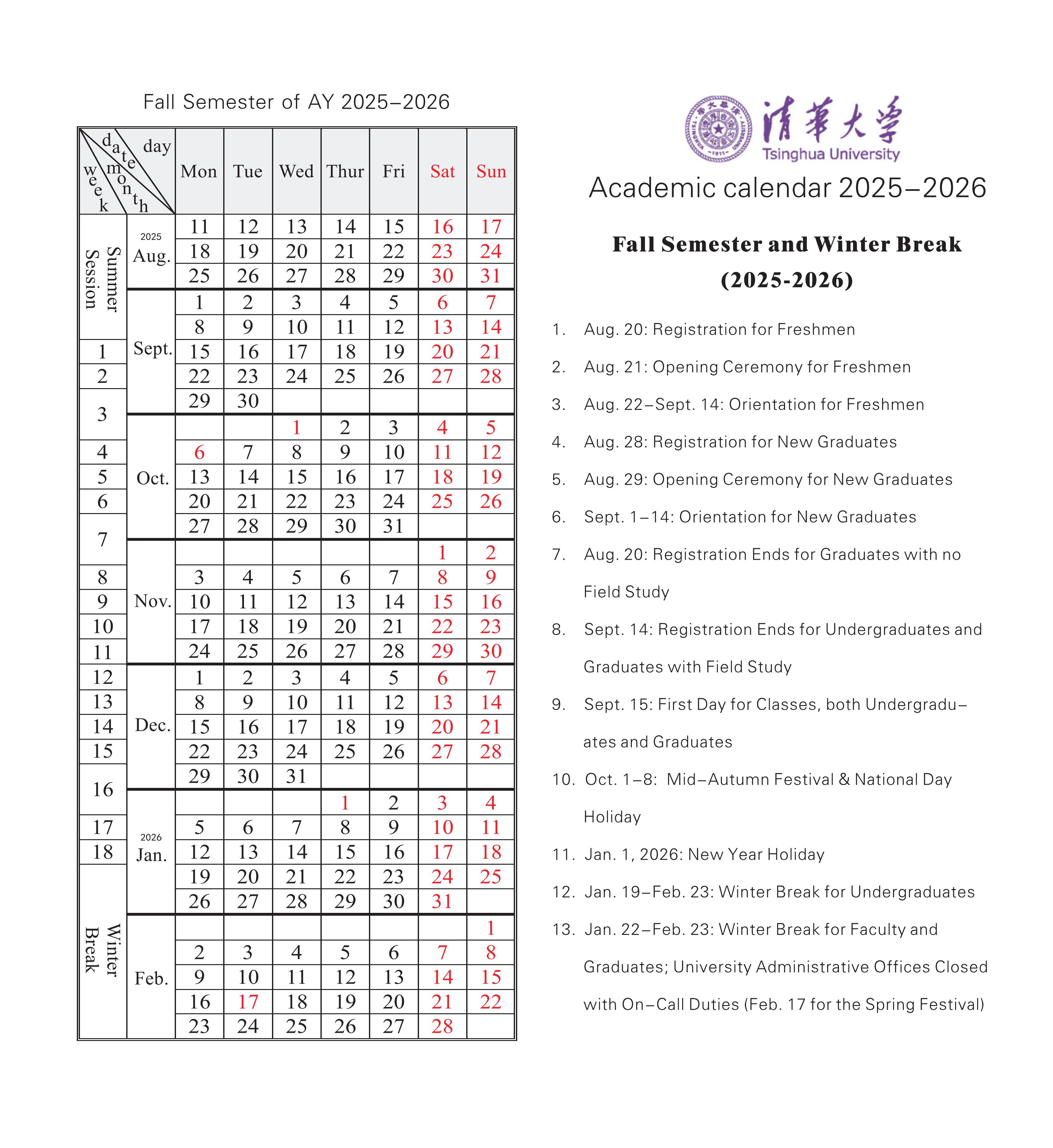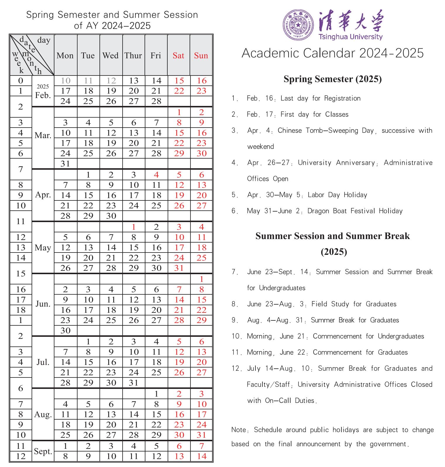 Academic Calendar