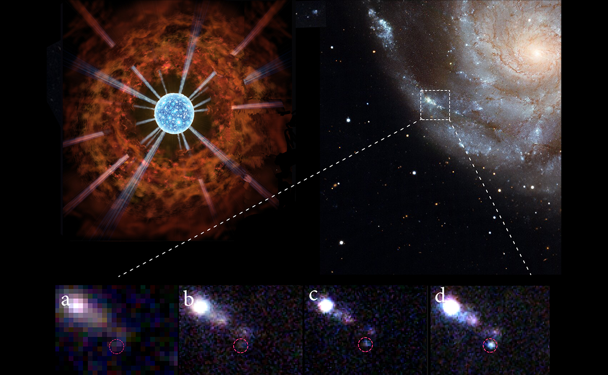 Amateur observations have recorded the flash of a giant exploding star within an hour of its collapse.