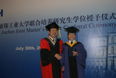 “The ceremony here today marks one of the most important milestones in your life”, said President Gu, “ you have had the opportunity to study in the Tsinghua-Aachen joint program, which provides you not only well designed coursework but also the opportunity to explore the outside world and broaden your global perspective.” He said that the students should take over the tradition of Tsinghua University to make lasting contributions to the advancement of science and technology, to the sustainable development of the country, and to the peace of the world.
