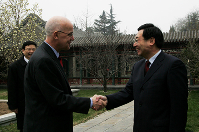 The Vice Chancellor also visited the Department of Chemistry and School of Medicine during his stay in Tsinghua University, and met with Tsinghua University Council Chairman Hu Heping prior to the speech in the morning. Hu gave a brief introduction of Tsinghua University to the Chancellor and the two hoped more collaboration will be built between the two universities in the near future.