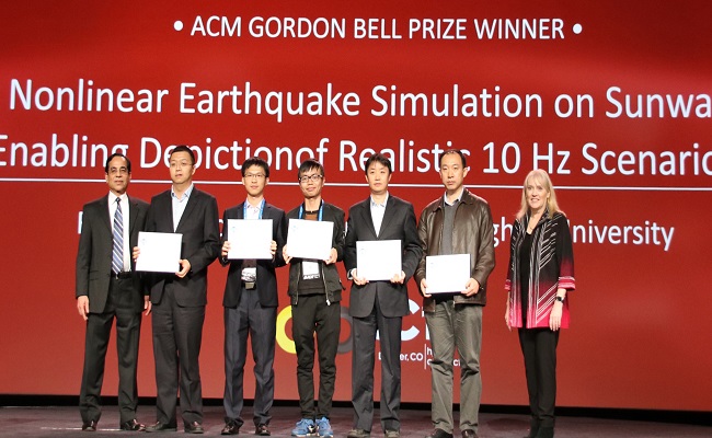 ACM named a 12-member Chinese team, five of whom are from Tsinghua University, as the recipients of the 2017 ACM Gordon Bell Prize, for their research project, “18.9-Pflops Nonlinear Earthquake Simulation on Sunway TaihuLight: Enabling Depiction of 18-Hz and 8-Meter Scenarios.” Using the Sunway TaihuLight, which is ranked as the world’s fastest supercomputer, the team developed software that was able to efficiently process 18.9 Pflops (or 18.9 quadrillion calculations per second) of data and create 3D visualizations relating to a devastating earthquake that occurred in Tangshan, China, in 1976. This is the second time that the prize has been given to a Chinese research team.
