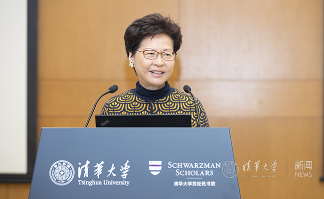 On March 6th, Carrie Lam Cheng Yuet-ngor, the Chief Executive of the Hong Kong Special Administrative Region (HKSAR), visited Tsinghua University and delivered a speech at Schwarzman College. Tsinghua University Council Chairperson Chen Xu attended and hosted the session.