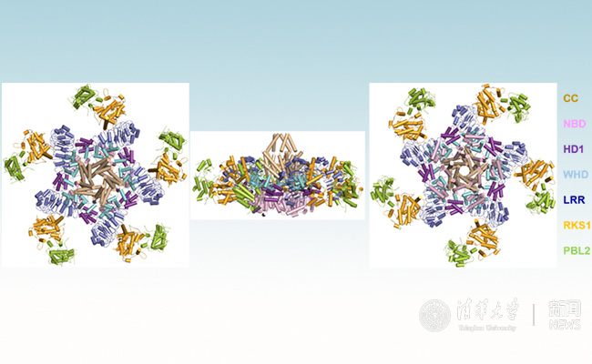 Two landmark studies from the laboratories of Professor Jijie Chai, Professor Hong-Wei Wang in Tsinghua University and Professor Jian-Min Zhou in Chinese Academy of Sciences provide unprecedented structural insight into how plant immune receptors are primed – and then activated – to provide plants with resistance against microbial pathogens, which are published as bac-to-bac Research Articles in Science on April 5, 2019. Two papers are entitled “Ligand-triggered allosteric ADP release primes a plant NLR complex” and “Reconstitution and structure of a plant NLR resistosome conferring immunity”, respectively.