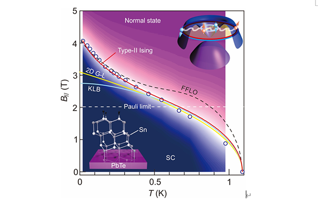 Recently, a China-Germany collaborative team led by Associate Prof. Ding Zhang and Prof. Qi-Kun Xue of the Department of Physics, Tsinghua University, has overturned the boundary set by former theories; for the first time, they observed an enhanced critical magnetic field—a few times the conventionally expected value—in a highly symmetric material, few-layer stanene. They clearly observed divergent behavior of the critical magnetic field as the temperature approaches absolute zero, giving strong evidence for Ising superconductivity. On March 13th (Beijing time), this study was reported in Science under the title “Type-II Ising pairing in few-layer stanene”.