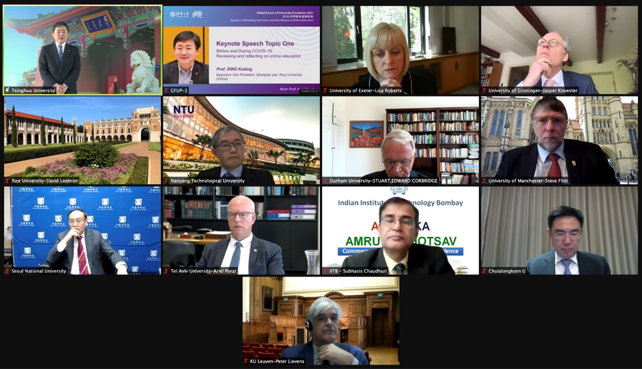 The third session of the Global Forum of University Presidents 2021 (GFUP 2021) was held online on April 22nd. With the theme of “Rethinking the Future and the New Mission of Online Education,” this event aimed to gather ideas from global leaders and encourage universities to work together to tackle challenges and opportunities, envision the future of online education, and embark on a new journey of higher education to build more open, integrative and resilient universities. More than 80 representatives from 19 universities from 17 countries, including China, the United States, France, Russia, the United Kingdom, Italy, Israel, India, South Korea, and Singapore attended this session, with 25 of them exchanging views on online education in the form of keynote speeches.