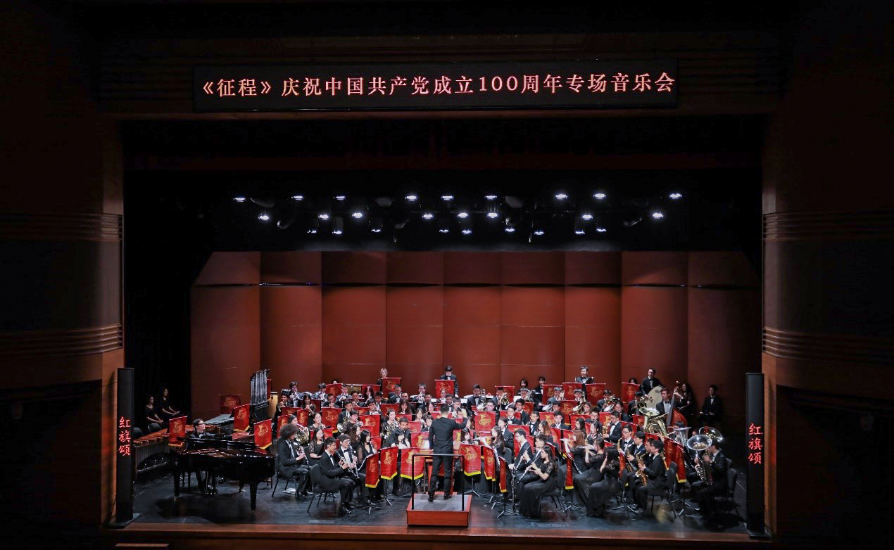 A special concert celebrating the 100th anniversary of the founding of the Communist Party of China (CPC) was performed by the Tsinghua Military Band of the Student Art Troupe at Meng Minwei Concert Hall.