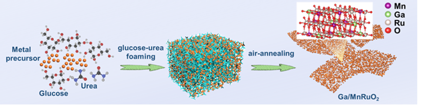 The team’s catalyst preparation way, a glucose-urea foaming method involved, forms a Ga, Mn-doped RuO2 single-phase structure with porous sheet-like foam