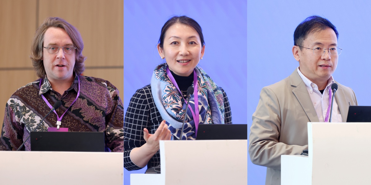 Pierre Senellart, Ji Ping, and Li Qing delivering keynote speeches (from left to right)