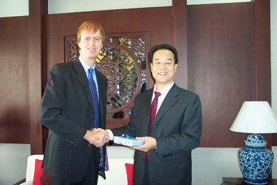 After the talk, Mr. Timms paid a visit to the BP center, where he attended a seminar on energy resources. Prof. Wu Zongxin, Prof. Zhang Zuoyi, Dean of Institute of Nuclear and New Energy Technology of Tsinghua University, and Prof. Li Jingming, Deputy Director of Research Institute of Petroleum Exploration and Development of China National Petroleum Corporation, gave presentations respectively on general energy situation in China, nuclear energy in China, and natural gas in China.