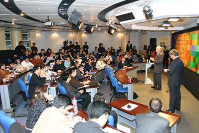 Dr. Craig R. Barrett, CEO of Intel Corporation, met with EMBA students Nov. 15 for a talk and Q and A about his company.