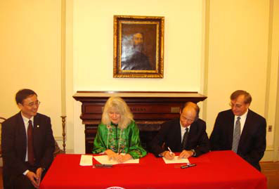 In addition to the MOU, the ceremony launched an exchange program fortwo librarians from Tsinghua who will spend November 2009 exploring Cornell Library's services and operations. Cornell will likely send a few members of its staff to Tsinghua in the near future. Kenney said the exchange "represents the first formal act in this compact."