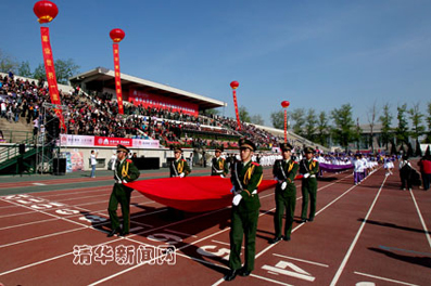 Hosted in the East Sports Ground, the opening ceremony included a performance by the Marching Band of the Tsinghua University Student Art Troupe, the Entrance of the Athletes, and a large-scale thematic show titled “A Tribute to Tsinghua”. Special guests included Tsinghua university alumni who graduated around 50 years ago. Over 3,500 faculty, staff members, and students performed in the ceremony, which consisted of three scenes, namely “Blossoming of Chinese Redbud” (Tsinghua flower), “Active Life on Campus”, and “Vision of the Future”. 320 faculty and staff members also participated in this event, performing Tai Chi fans, while over hundreds of male university students performed traditional Chinese martial arts with swords alongside the faculty members. Over 800 female dancers staged a remarkable performance with student athletes from sports teams. In total, there were over 3,200 international student representatives from 122 countries as well as pupils from Tsinghua’s Primary School. With the colorful attire, choreographed dances, upbeat music, and sheer number of student and faculty representatives, the Opening Ceremony of Mayuehan Sports Games was a memorable start to what is to be sure would be an even more impressive Tsinghua Centennial Anniversary.