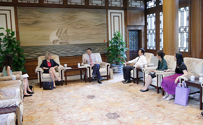 Ambassador Marja Rislakki, the Finnish Ambassador to China paid a visit to Tsinghua University on July 6th. On this, her first visit to Tsinghua, the ambassador was welcomed by Tsinghua Vice President SHI Yigong.