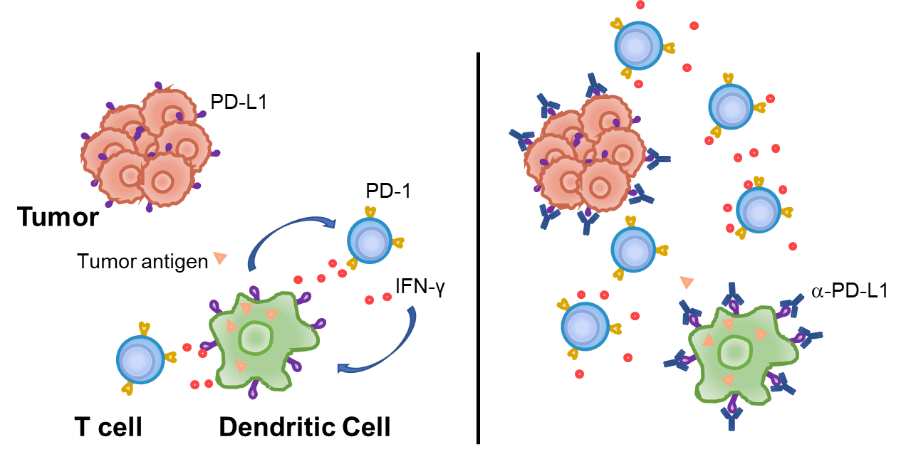 Furthermore, the study found that dendritic cells do not produce high levels of PD-L1 in healthy mice. When they contact with T cells, T cells will become activated and begin to produce interferon-gamma, a signaling cytokine that can both kill tumor cells and activate other components of the immune system. Meanwhile, interferon-gamma drives dendritic cells to produce PD-L1, and the latter dampens further activation of T cells. Under normal conditions, such processes serve as a feedback loop to prevent over-activation of the immune system, which might lead to auto-immune diseases. In the case of a tumor, however, it greatly suppresses the anti-tumor immunity and prevents the clearance of the tumor. This might be the reason why clinical responses of immune checkpoint blockade therapy are observed in patients where tumor cells do not produce PD-L1 – if their dendritic cells produce PD-L1, they might benefit from immunotherapy as well.