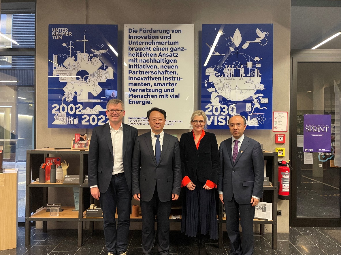 Wang Xiqin, president of Tsinghua University, visits laboratories and holds talks with experts at RWTH Aachen University.