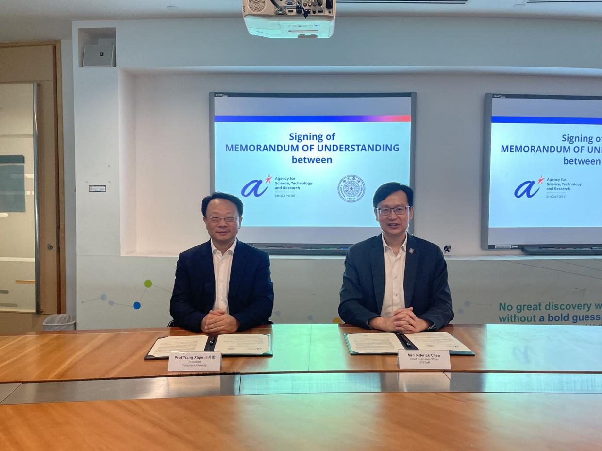 Later, Wang and Chew signed a memorandum of understanding on cooperation between Tsinghua University and A*STAR.