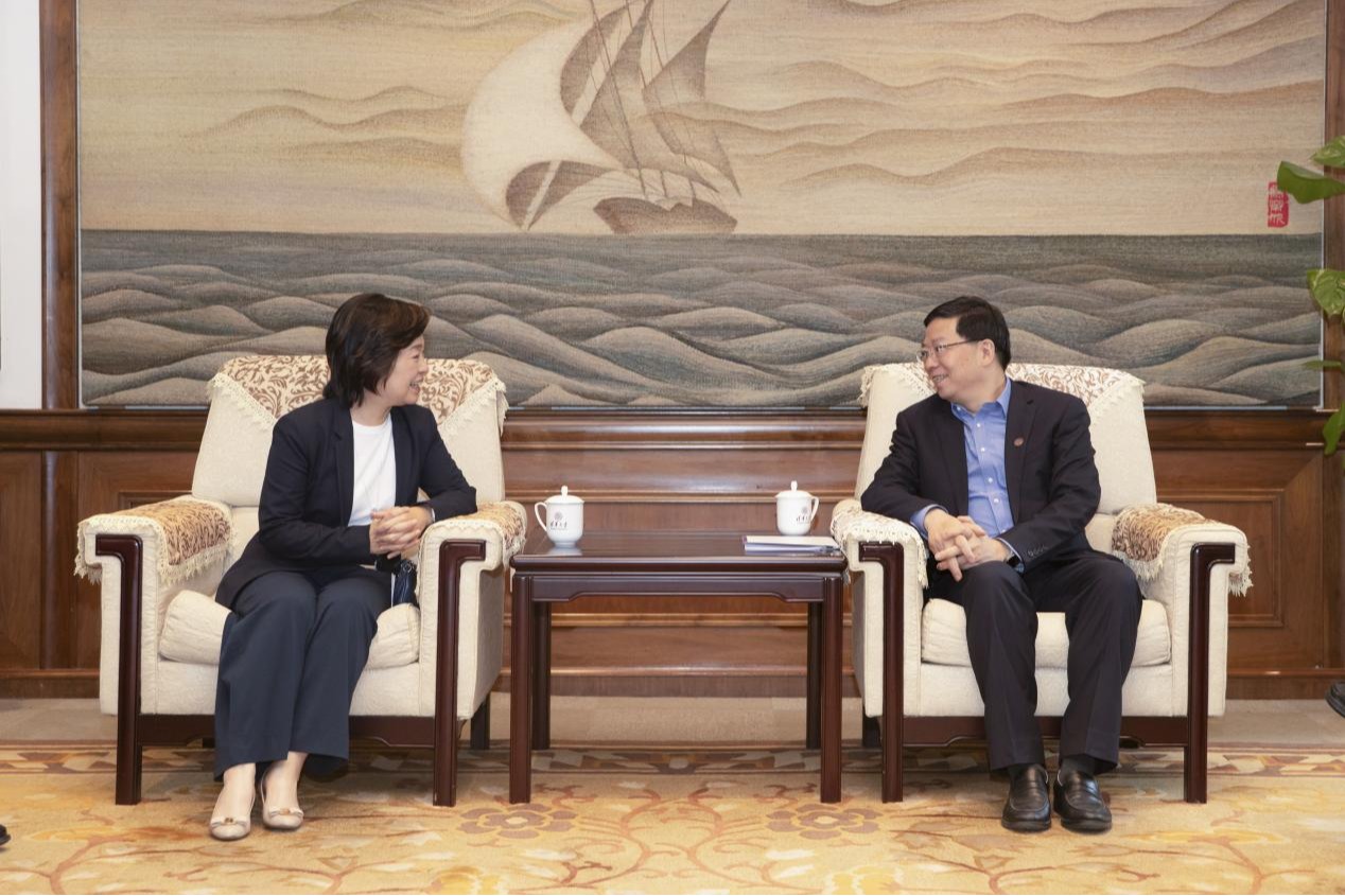 9月26日,香港特别行政区教育局局长蔡若莲一行访问mk手机注册。校党委书记邱勇在工字厅西厅会见来宾,副校长王宏伟参加会见。