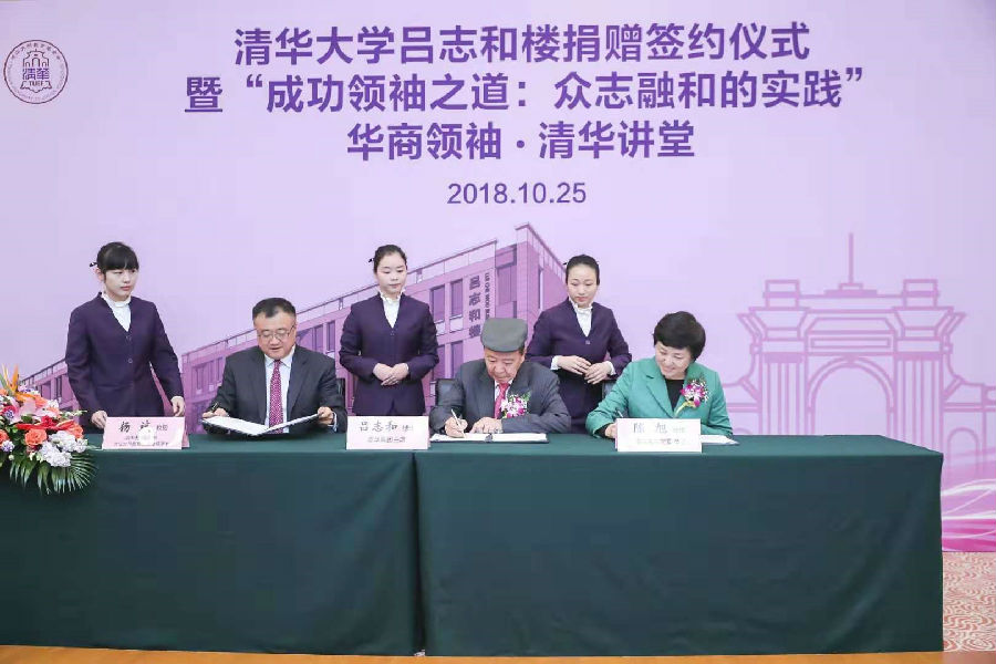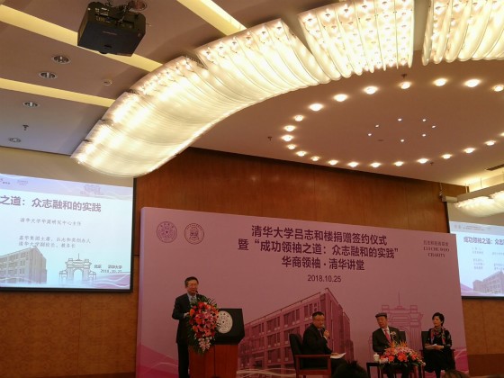 On the morning of Oct. 25, 2018, Doctor Lui Che-woo, Chairman of K. Wah Group and his wife Ms. Lvzhao Jinping as well as other families were present at Tsinghua University and announce to donate RMB 200 million to Tsinghua University. Prof. Chen Xu, Party Secretary and Prof. Yang Bin, Vice President of Tsinghua University concluded the donation agreement with Doctor Lui Che-woo on behalf of Tsinghua University and Tsinghua University Education Foundation, respectively. After the signing ceremony, at the “Leaders of Chinese Entrepreneurs-Tsinghua Lecture” chaired by Prof. Long Denggao, Director of CCES, Doctor Lui Che-woo had a wonderful dialogue with Prof. Yang Bin, Vice President of Tsinghua University centering on the title of “the way to successful leaders: practice with concerted efforts”, and answered questions by audiences from Tsinghua and other organizations during the interaction activity.