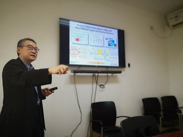 Prof. Shi first introduced the background and source of the concept of business ecology, then analyzed how to understand and describe business ecology, explained establishment of business ecology in detail by taking ARM’s development and the copycat innovation in Shenzhen, China as the cases, summarized that the interaction between value chain and embedded resource pool serves as the main driver to generation and development of business ecology, and finally expressed some thoughts on what kind of theories and applications business ecology will bring to the management science, greatly inspiring the M.S. students and doctoral students and being unanimously appreciated by the teachers and students present at the Lecture. Doctoral Student Kang Zhengyao from the Institute of Economics addressed highly forward-looking questions on the mechanism and structure that each entity in business ecology shares risks and interests, winning affirmation and in-depth personal thinking of Prof. Shi. A post-doctor from the State-owned Enterprise Research Academy asked questions on the role of culture in the ecology, on which Teacher Shi and Teacher Rong expressed their views, namely corporate culture and social culture make very important influences on business ecology, and determine the process of evolution of business ecology together with other factors.