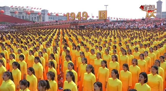 盛装的天安门广场,五星红旗迎风招展。从盛大的国庆阅兵到欢乐的群众游行,生动的画面传向五洲,欢乐的笑脸感染世界。