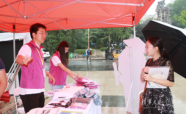 今天的清华园到处都是热情洋溢的笑脸。彩色道旗在雨中迎风飘扬,双语指示牌清晰醒目,迎新大礼包丰富贴心……朝气蓬勃的清华园正张开怀抱,欢迎来自世界各地的研究生新同学。