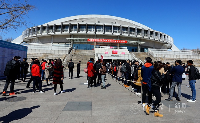 洽谈会场外应聘同学早早排起了长龙
