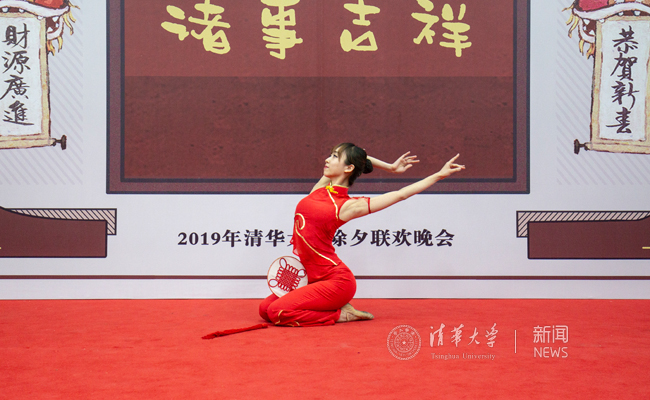 精彩绝伦的联欢节目逐一登场。开场歌曲《Treasure》和《月亮代表我的心》,来自马拉维的国际学生、新闻学院2018级安萨卡和来自美国的国际学生、人文学院2015级本科生柯伊桑用美妙的歌声传递了新春的祝福。学生艺术团舞蹈队队员、法学院2018级本科生陈希希献舞《中国结》,也将吉祥如意、团圆美满的美好寓意献给各位观众。饮食中心的师傅张林用一首脍炙人口的歌曲《欢聚一堂》表达了现场所有人辞旧迎新的喜悦。材料学院2017级研究生顾校宇、金融学院2018级研究生王明媚、化学系2018级本科生蓝青、社科学院2018级研究生葛诺一同带来歌曲联唱《南山南》《成都》《清华路之歌》,歌声化作星火温暖除夕夜。