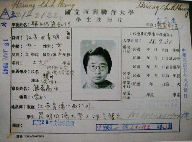 熊知行1938年进入国立西南联大读书时的学生注册卡片(资料图片)