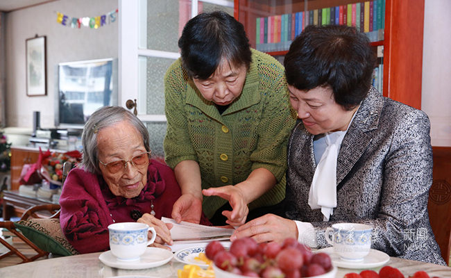 熊知行外甥女、杏范教育基金会秘书长杨竞鸣向陈旭一行介绍,熊先生对母校一直很关心,每每有清华送来的刊物,都会认真阅读。
