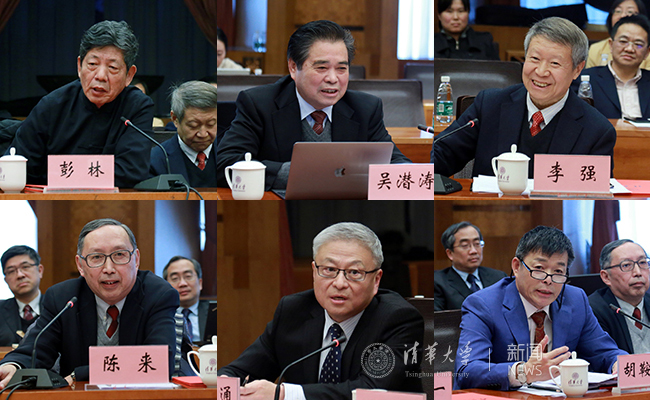 胡鞍钢、陈来、韩美林在发言中表示,获聘文科资深教授倍感荣幸,将不忘初心、继续前行,在各自领域孜孜不倦、执于追求,持续为清华人文社科发展贡献力量。柳冠中、吴潜涛、万俊人、彭林说,学校把文科放到很高的位置,自己深感责任重大,希望成为做人和做学问的统一典范。刘巨德、崔建远、汪晖、谢维和认为,一个学科的孤军突出很难获得质和量的保证,文科的整体进步需要交叉融合、相互促进。薛澜、杜大恺、李强、钱颖一、王明旨、阎学通等,也纷纷就文科的师资队伍建设、学生培养、学术研究等提出了自己的意见建议。
