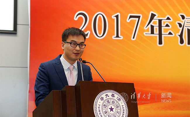 研究生特等奖学金获奖代表、航天航空学院研究生李国洋从2010年入学时家乡人民期盼他毕业后给家乡修路的故事讲起,分享了在清华的学习和科研经历,着重讲述了博士生阶段为突破“利用超声弹性成像技术在临床应用”而争分夺秒做科研的感触。他说,在清华的学习经历使他深刻理解了国家和人民的期待,感受到了自己的使命和责任。