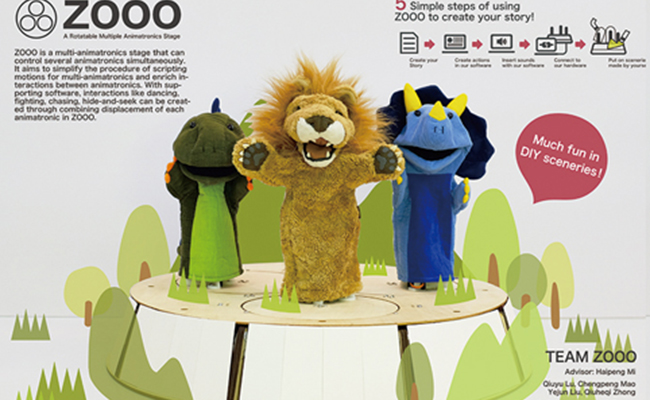 2015年,第28届国际用户界面软件与技术大会的学生创新竞赛中,清华美院信息艺术设计交叉学科研究生团队Team ZOOO摘得了全场仅有的两个大奖之一“最佳硬件创新奖”。图为团队作品海报。