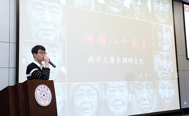航院2015级学生杨普汇报“国殇八十载——南京大屠杀调研支队”支队成果。