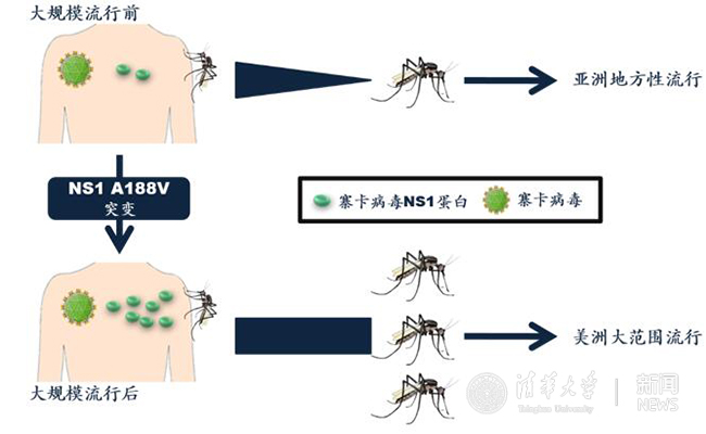 寨卡病毒NS1蛋白188位点氨基酸突变导致蚊虫带毒率上升,促使寨卡病毒大范围流行。