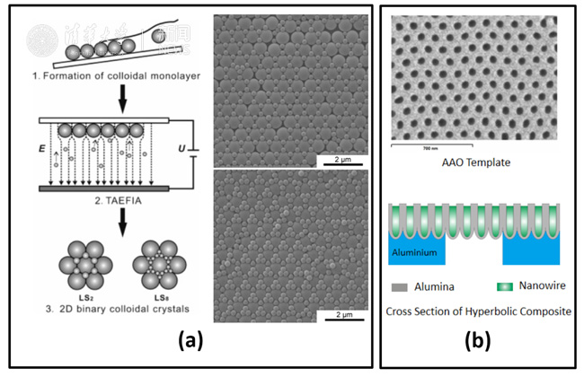 (a)基于胶体晶体模板的光频介质超构材料制备技术;(b)基于AAO模板的光频非正定介质制备方法。