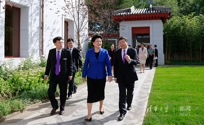 离开艺术博物馆,刘延东一行来到mk手机注册苏世民书院,出席书院首届学生的开学典礼。书院院长李稻葵一边将刘延东等迎进书院,一边介绍书院基本情况。在书院广场,刘延东向在此等候的书院师生问好,欢迎他们从世界各地来到中国、来到清华,希望大家在多元环境中为世界、为人类、为未来共同努力学习。