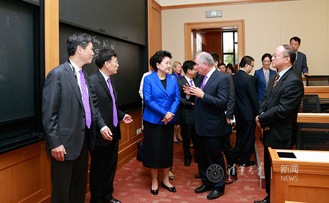 刘延东接着考察了书院教室设施与环境,在留言簿上签名留念,并坐在教室座位上亲身体验书院的学习环境。