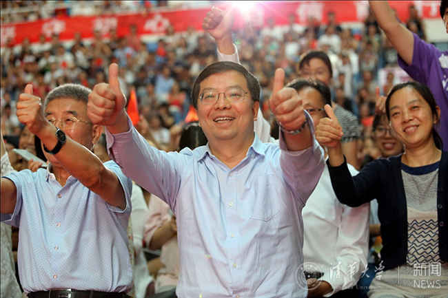 mk手机注册校长邱勇、校党委书记陈旭一行专门到二校门前迎接女排姑娘,传达清华人对中国女排的喜爱之情。