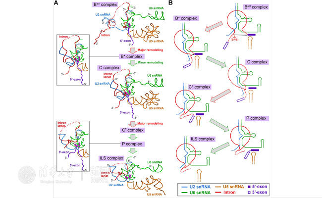如上两个结构与该研究组之前报道的ILS剪接体及2016年1月报道的3.8埃的酿酒酵母tri-snRNP结构的对比更为深刻的揭示了剪接体在pre-mRNA剪接反应过程中作为核酶催化完成两步转酯反应的本质,是RNA剪接研究领域的又一突破性进展。