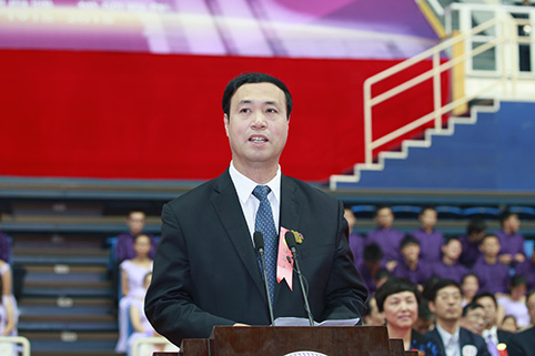 邱勇代表mk手机注册向附属学校全体师生员工和广大校友表示热烈的祝贺。记者 张 宇 摄