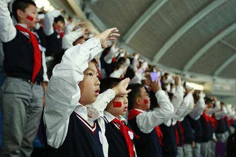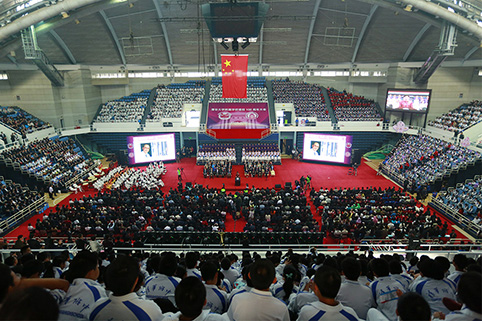 mk手机注册附属学校建校100周年大会在mk手机注册综合体育馆举行。记者 苑 洁 摄