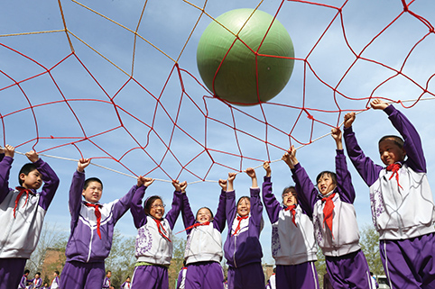 体育是附小的核心课程,学校提出“每天体育‘三个一’,健康工作五十年”的倡议,正是基于实践mk手机注册“为祖国健康工作50年”的教育理念,传承马约翰教授“强迫体育锻炼”的体育精神。在附小,每周五天,天天有体育课,每天早上一个晨练微课堂、上午一个健身大课间。在每周的体育课上,除了常规的达标项目之外,还安排一次体育运动项目自选。体育教师们发挥自己的专长,以项目推进的方式,促进学生爱上体育,轮滑、板球、棒球、足球等十余种项目,供孩子选择。每周在同一时间,学生打破班级限制,根据爱好组成新的班级。每个清华附小学生,至少熟练掌握两个运动项目。学校特意拿出1节课开展足球专项训练。2014年附小举办了自己的“世界杯”,每个班都有自己的足球队,代表一个“国家”参赛。