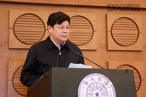 陈旭代表清华对丘成桐数学科学中心的成立表示祝贺。实习记者 张 宇 摄