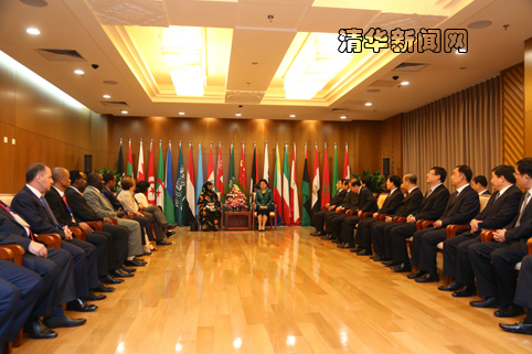 图为刘延东在开幕式前会见阿拉伯各国文化部长。石加东 摄