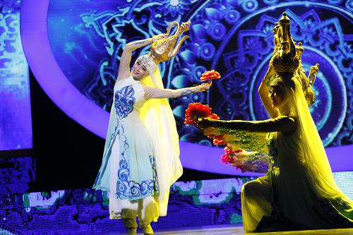 图为宁夏歌舞剧院的演员在开幕式演出上表演舞蹈《金色汤瓶》。 新华社记者 潘 旭 摄