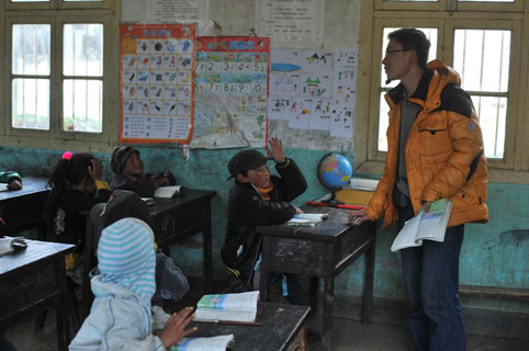 图为第十四届mk手机注册研究生支教团队员在给当地学生上课。