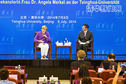 图为默克尔与清华学生交流。学生记者 王皓冉 摄