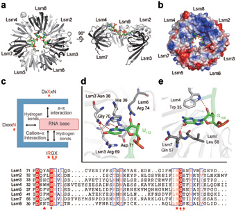 图示Lsm2-8复合物与U6 RNA的特异性识别。