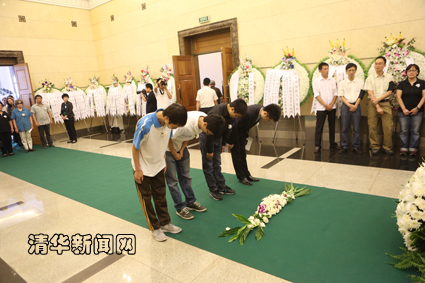 图为清华学生向张光斗先生遗体鞠躬表示哀悼。记者 智 斐 摄