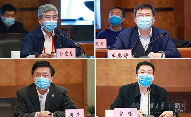 白重恩、王忠静、周杰、曾嵘(从左至右,从上至下)作工作汇报